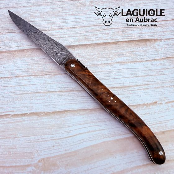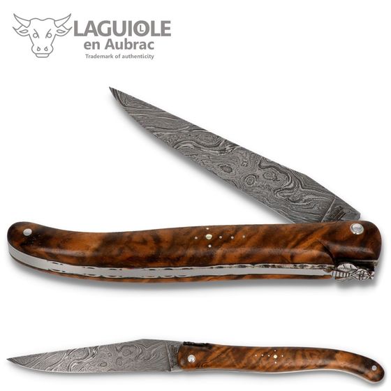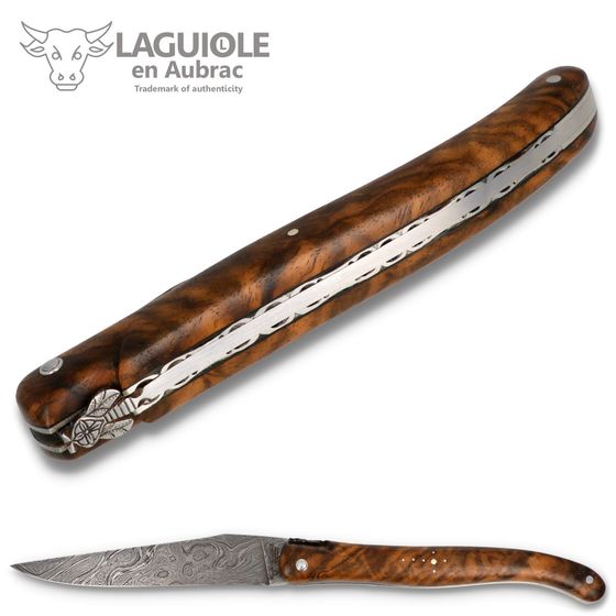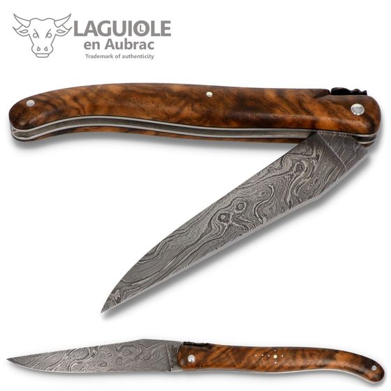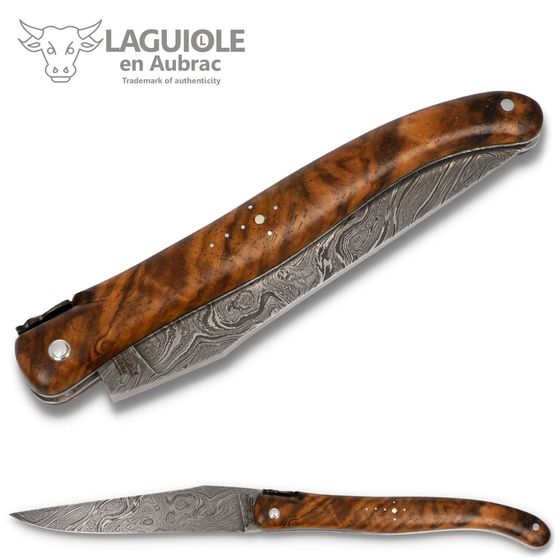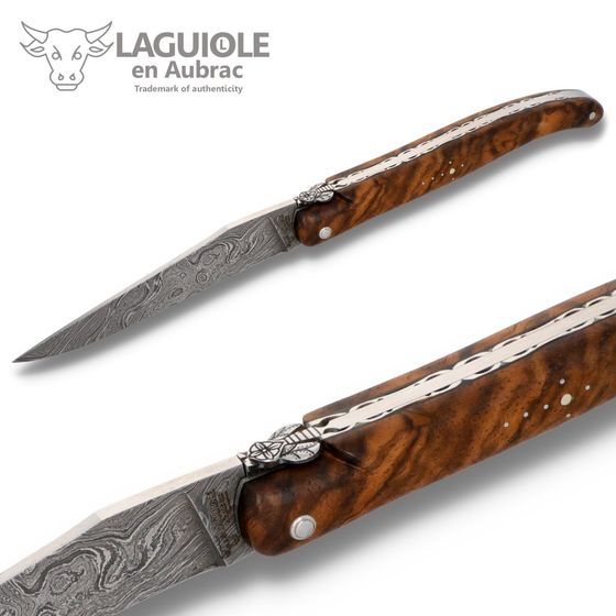 Besonders hochwertiges Taschenmesser von Laguiole en Aubrac mit Griff aus Walnuss-Wurzelholz und Damastklinge